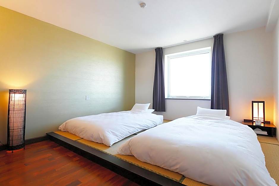The twin room includes a private bathroom, well-fitted with a bath, a shower, a bidet, a hairdryer and slippers. The air-conditioned twin room features a flat-screen TV with cable channels, tatami, soundproof walls, a coffee machine as well as sea views. The unit has 2 beds.
